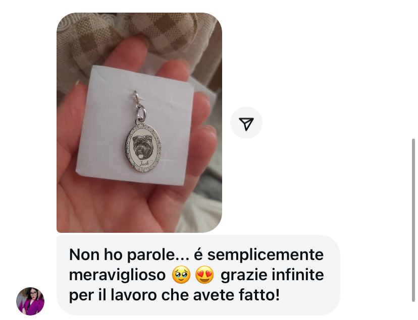 OGNI NOSTRO PEZZO E' REALIZZATO A MANO IN ARGENTO 925 DI ALTA QUALITA',PARTENDO DALLA FOTO REALE DEL TUO PET.CHE SIA UN GATTO ,UN CANE O QUALSIASI ALTRO COMPAGNO DI VITA,CATTURIAMO I SUOI TRATTI AUTENTICI PER CREARNE UN RITRATTO INCISO,ELEGANTE E PIENO DI SIGNIFICATO.