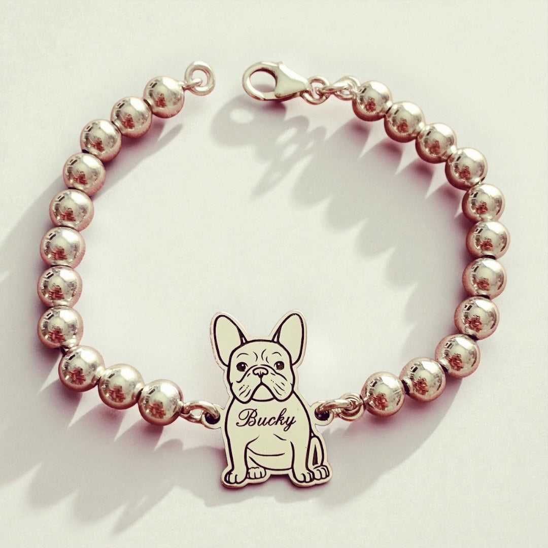 Il nostroiconico bracciale best seller è realizzato con sfere da 0,5 mm in argento e presenta la foto del tuo amico a quattro zampe.